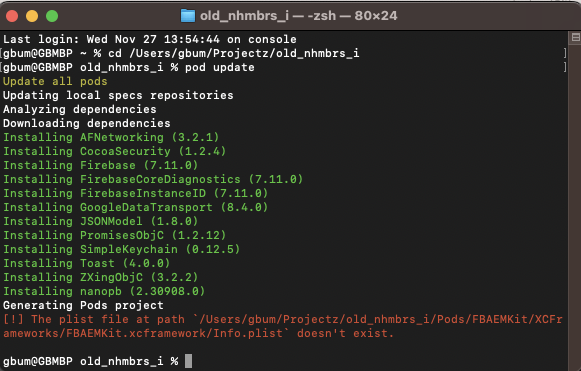 - 폴더를 터미널로 드래고 하고 엔터 치셈.