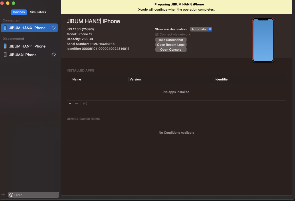 - usb로 아퐁 연결 하고 wifi도 연결 해주셈.